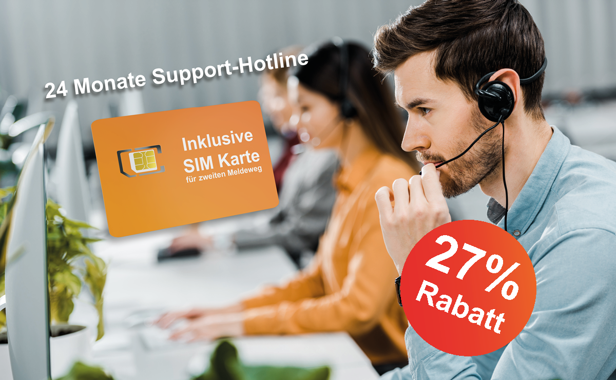 Wir lassen Sie nicht hängen:24 Monate zuverlässiger Support und eine sichere Mobilfunkverbindung für Ihre Alarmzentrale.